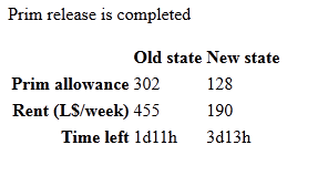 If you select the “REMOVE” option to delete a prim allowance, this will likely take some 10-20 seconds, slightly longer than claiming a prim allowance increase, and will return a similar display of the changes once complete: